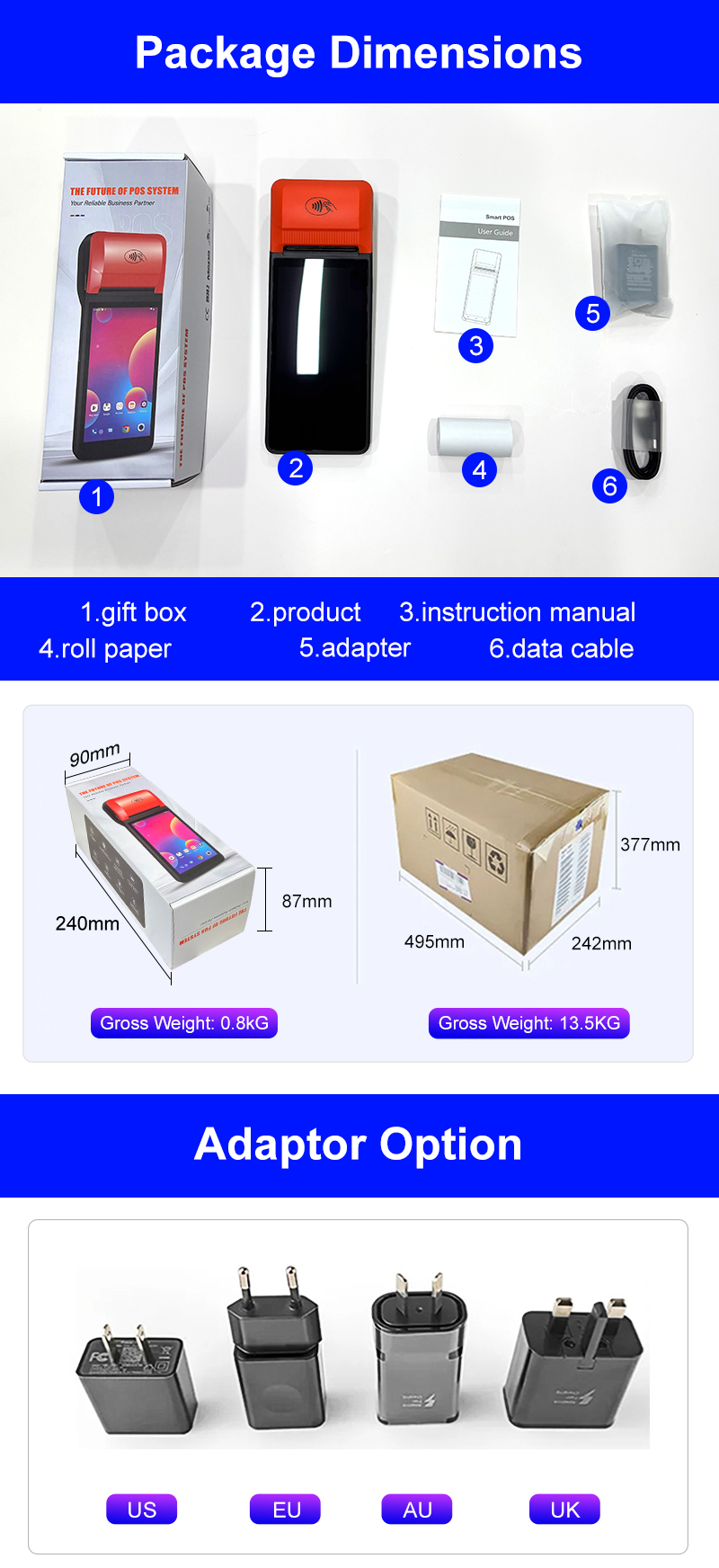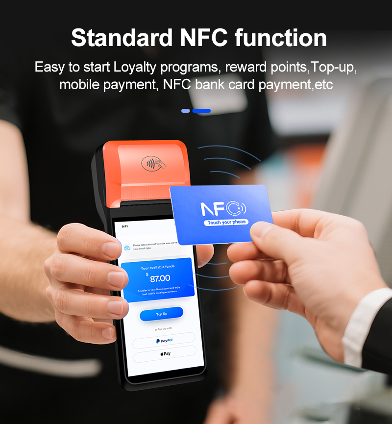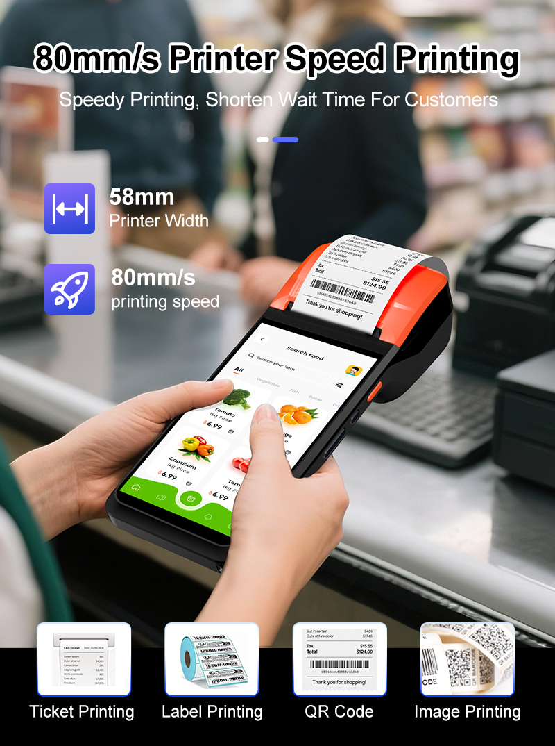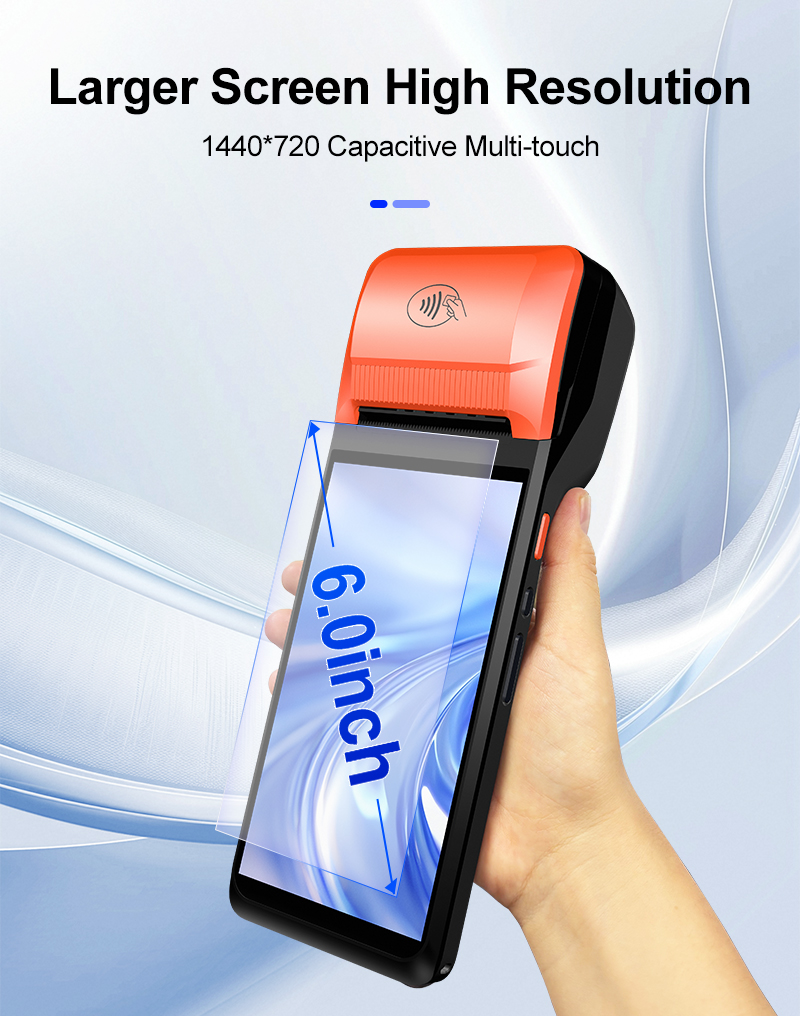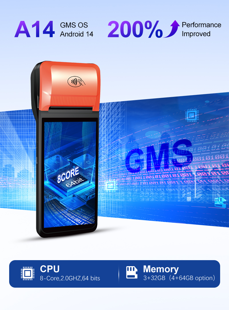 Handheld POS Terminal with 64 bits, 3 + 32GB, GMS Certification, SoftPOS Support.