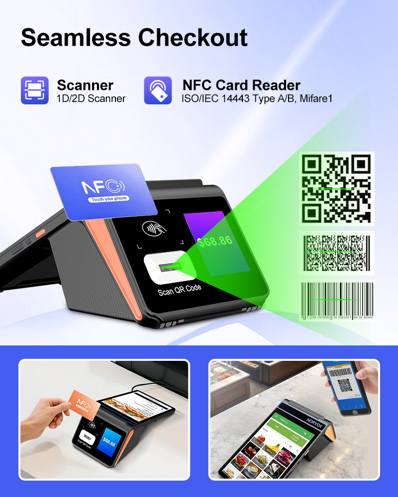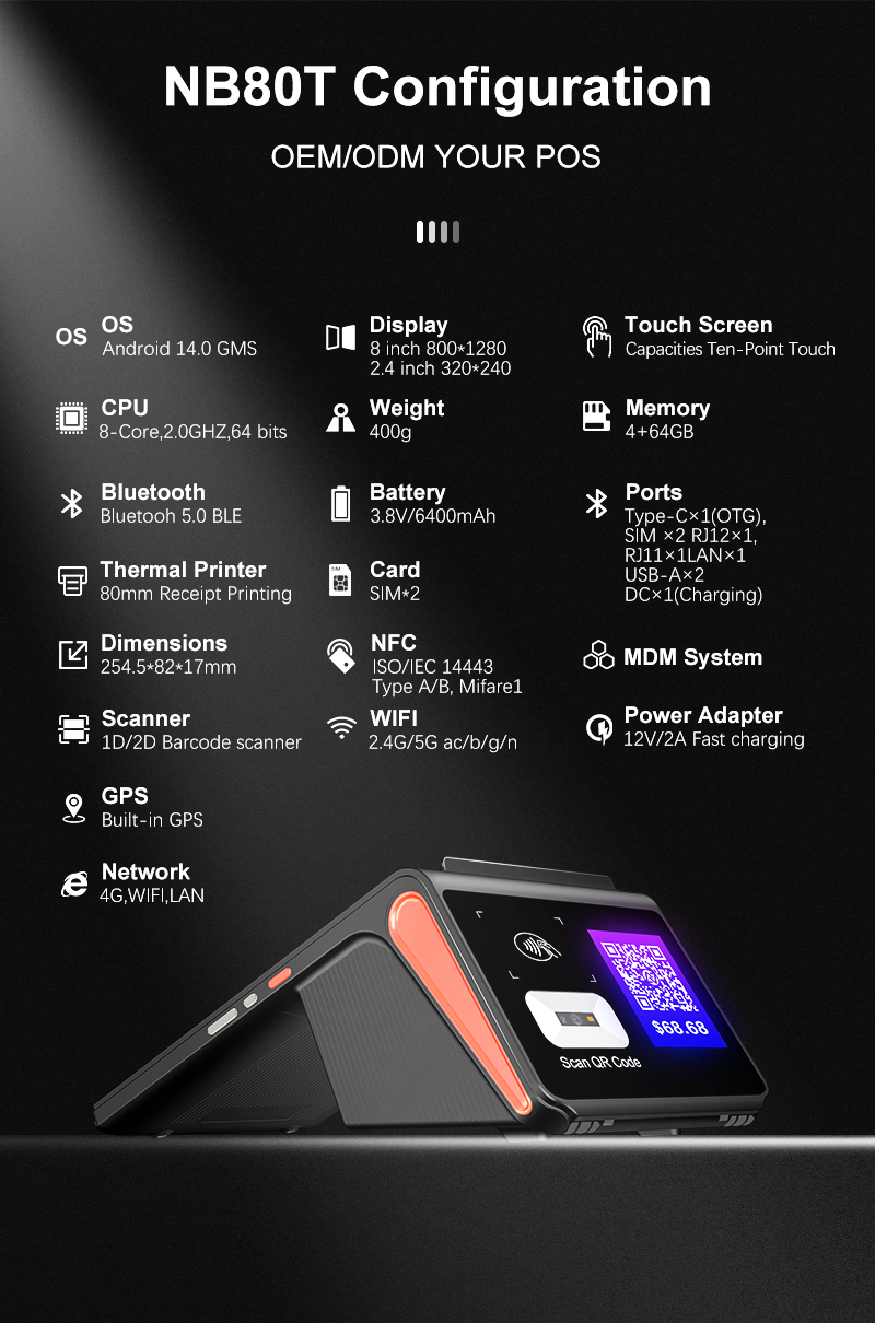 • 支付方式:二維碼支付\NFC支付,支持SoftPOS