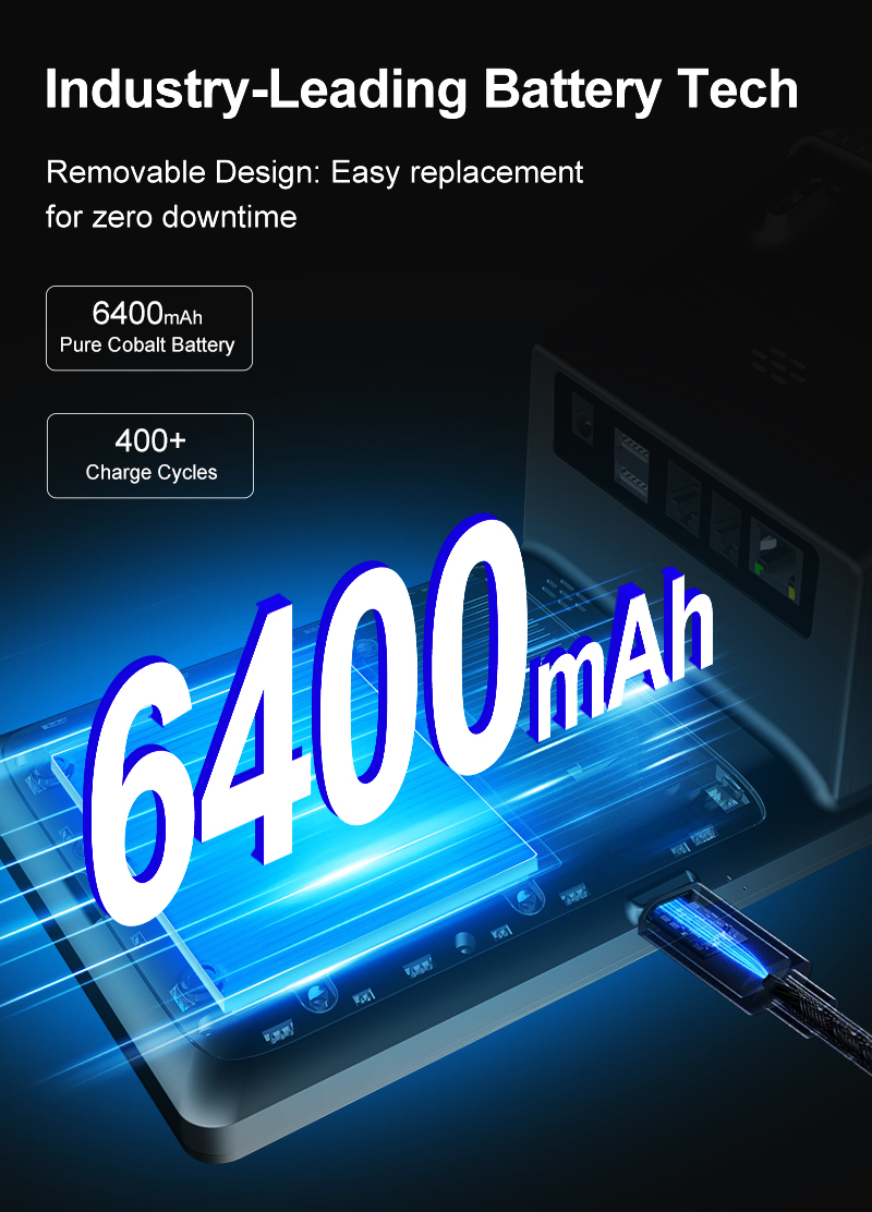 • 電(diàn)池:3.8V/6400mAH 電(diàn)池(可(kě)選 7.6V 3200mAh)。 用(yòng)于斷電(diàn)情況下(xià)的(de)臨時(shí)正常使用(yòng)